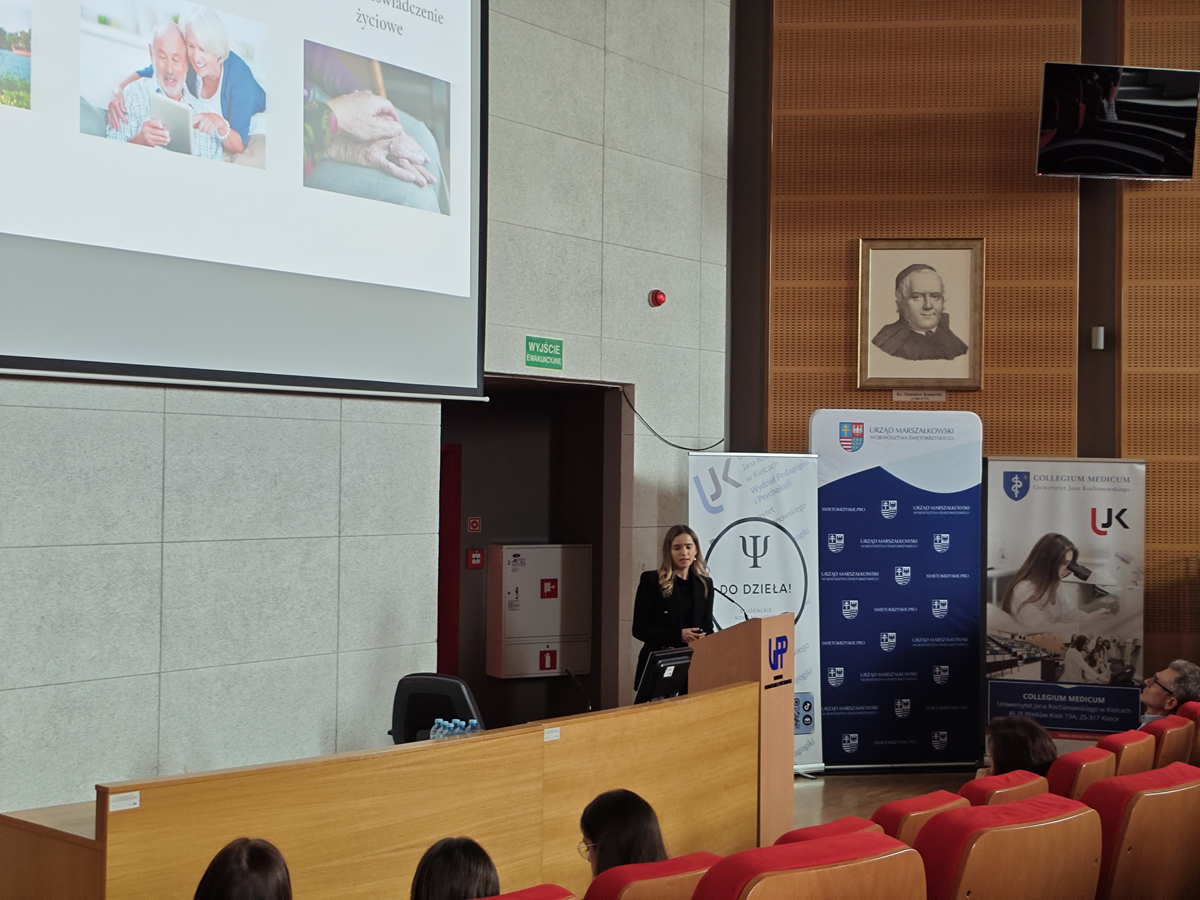 organizatorem było Studenckie Koło Naukowe Psychologii Stosowanej „DO DZIEŁA!”. Pierwszego dnia uczestnicy mogli wysłuchać inspirujących oraz skłaniających do refleksji wystąpień. Przewodnim tematem wszystkich prelekcji było ukazanie procesu starzenia się z perspektywy przeczącej stereotypom. Prelegenci podkreślali, że choć okres ten nie jest łatwy, niesie również wiele pozytywnych konsekwencji. Swoje wystąpienia przedstawili także reprezentanci placówek oferujących pomoc osobom starszym, działania tych instytucji w znaczący sposób wpływają na poprawę jakości życia Seniorów – zarówno w sferze fizjologicznej, jak i psychicznej. W międzyczasie – za sprawą studentów dietetyki naszego Uniwersytetu – uczestnicy mieli możliwość wykonania analizy składu ciała na profesjonalnych urządzeniach oraz skorzystania z indywidualnych konsultacji dietetycznych. Pierwszego dnia odbył się również pierwszy warsztat w Teatrze im. Stefana Żeromskiego, poświęcony arteterapii i prowadzony przez znanego polskiego aktora oraz reżysera Dawida Żłobińskiego; następnego odbyły się kolejne warsztaty, prowadzone przez studentów naszego Wydziału, Wydziału Chemii oraz Collegium Medicum. Ich tematyka pozwoliła uczestnikom zastosować w praktyce informacje zdobyte podczas wykładów. Uczestnicy mogli rozwijać zarówno ciało, jak i umysł, a także oddać się kreatywności. Serdecznie dziękujemy wszystkim prelegentom oraz osobom prowadzącym warsztaty. Do zobaczenia na