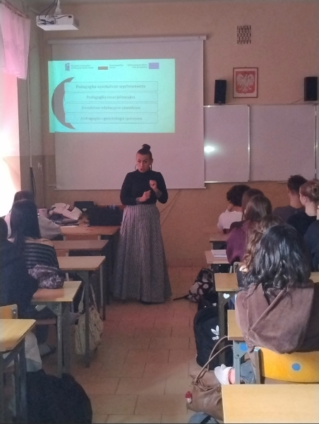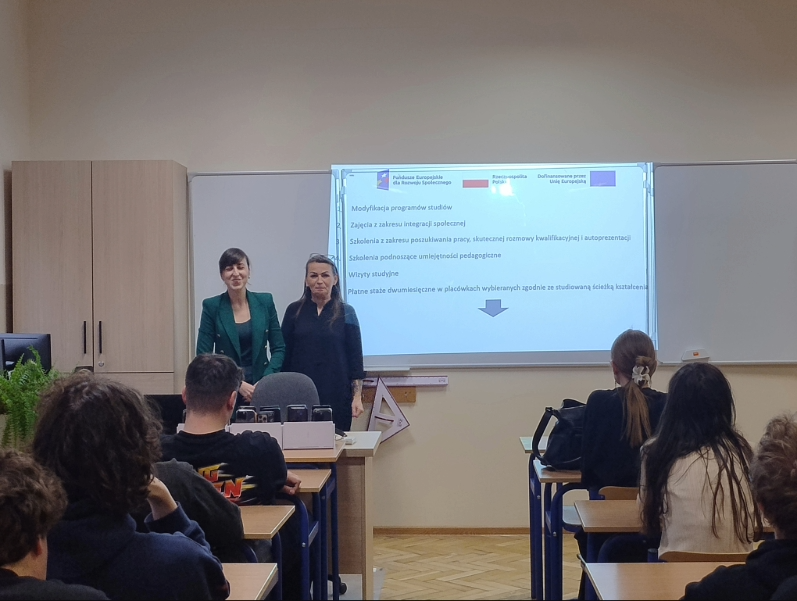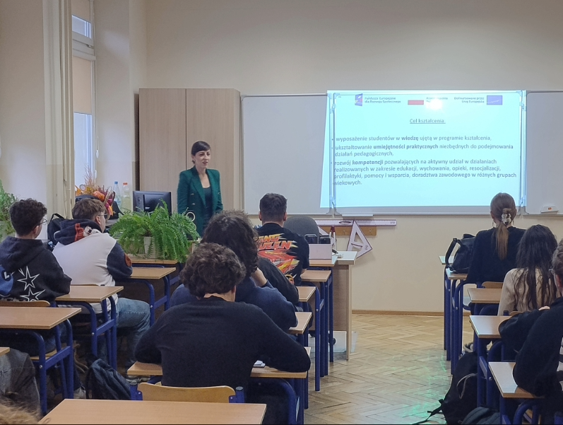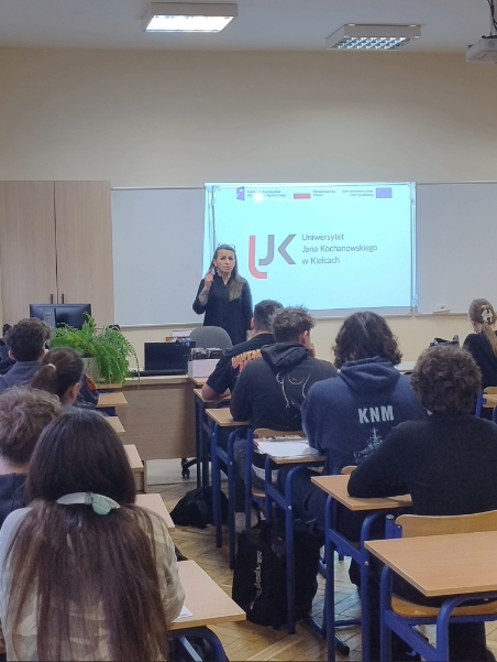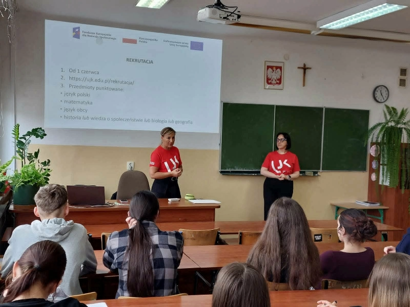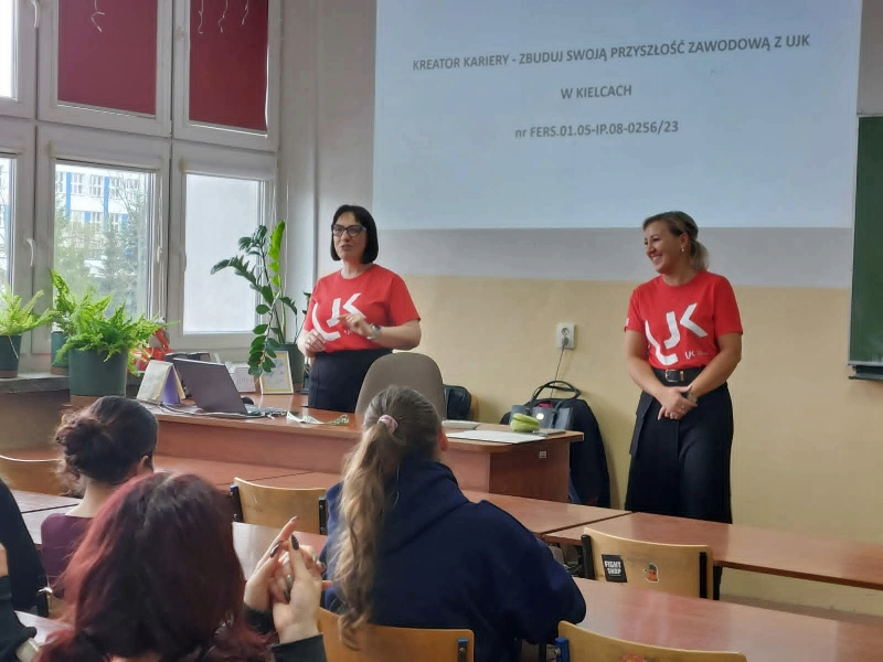 W ramach realizacji projektu: „Kreator kariery – zbuduj swoją przyszłość zawodową z UJK w Kielcach” dr hab. Paulina Forma, prof. UJK, dr Anna Róg, dr Karolina Wiśniewska oraz   dr Patrycja Hanyga odbyły cykl spotkań z uczniami kieleckich szkół ponadpodstawowych. Podczas wizyt prezentowały ofertę dydaktyczną Wydziału Pedagogiki i Psychologii, w szczególności możliwe do wyboru ścieżki kształcenia na kierunku: Pedagogika, objętym wsparciem w projektu. Integralną częścią spotkań były warsztaty, rozwijające kompetencje miękkie uczniów, m.in. pt. „7 filarów skutecznej komunikacji”., „Zrozumieć innych – rozwój kompetencji interpersonalnych”. Warsztaty spotkały się z dużym zainteresowaniem młodzieży; miały dynamiczny i interaktywny charakter – uczniowie chętni uczestniczyli w proponowanych aktywnościach, wykazując się dużym zaangażowaniem i otwartością.