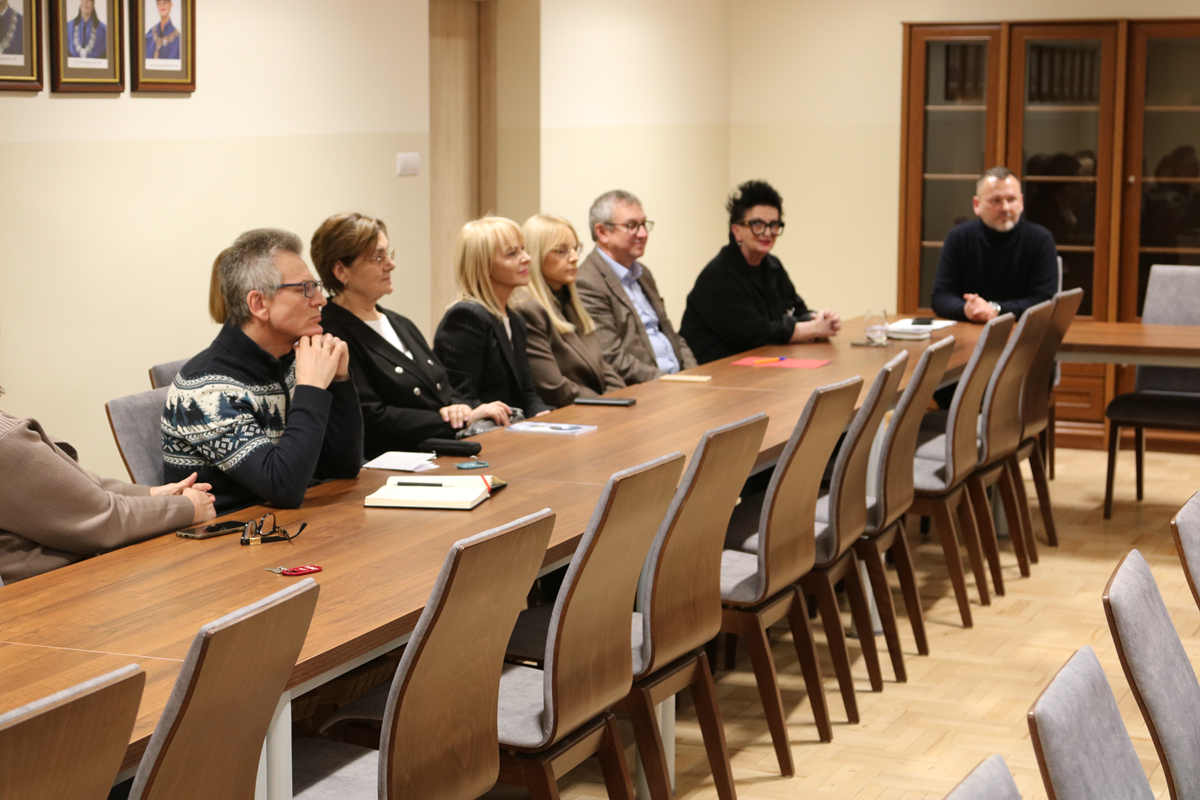 29. stycznia 2026 r. – z inicjatywy Dziekana Wydziału Pedagogiki i Psychologii dr hab. Sławomira Kozieja, prof. UJK – odbyło się spotkanie Rady Samorządu Studentów Pedagogiki i Psychologii z władzami Wydziału, które w sposób bezpośredni było związane z finałem święta studenckiej demokracji, tj. wyborów do Wydziałowych i Uczelnianej Rady Samorządu Studentów UJK. To szczególne wydarzenie zaszczyciła swoją obecnością Prorektor ds. Kształcenia UJK – dr hab. Mariola Wojciechowska, prof. UJK. Z ramienia Studentów uczestniczyli w nim: Przewodnicząca Wydziałowej Rady Samorządu Studentów Pedagogiki i Psychologii – Sandra Misztal (kierunek: Pedagogika specjalna), Wiceprzewodniczący – Hubert Bukowski (kierunek: Psychologia), Sekretarz – Paulina Woźniak (kierunek: Pedagogika przedszkolna i wczesnoszkolna), Członkowie – Zofia Marcinkowska (kierunek: Pedagogika przedszkolna i wczesnoszkolna), Sandra Nazimek (kierunek: Psychologia), Magdalena Szydłowska (kierunek: Psychologia) oraz Klaudia Kapral (kierunek: Pedagogika specjalna), która w ostatnich wyborach została wybrana na Zastępcę Przewodniczącego Uczelnianej Rady Samorządu Studentów UJK. Oprócz gratulacji i życzeń spotkanie wypełniły deklaracje obustronnej współpracy i planów wspólnych działań.