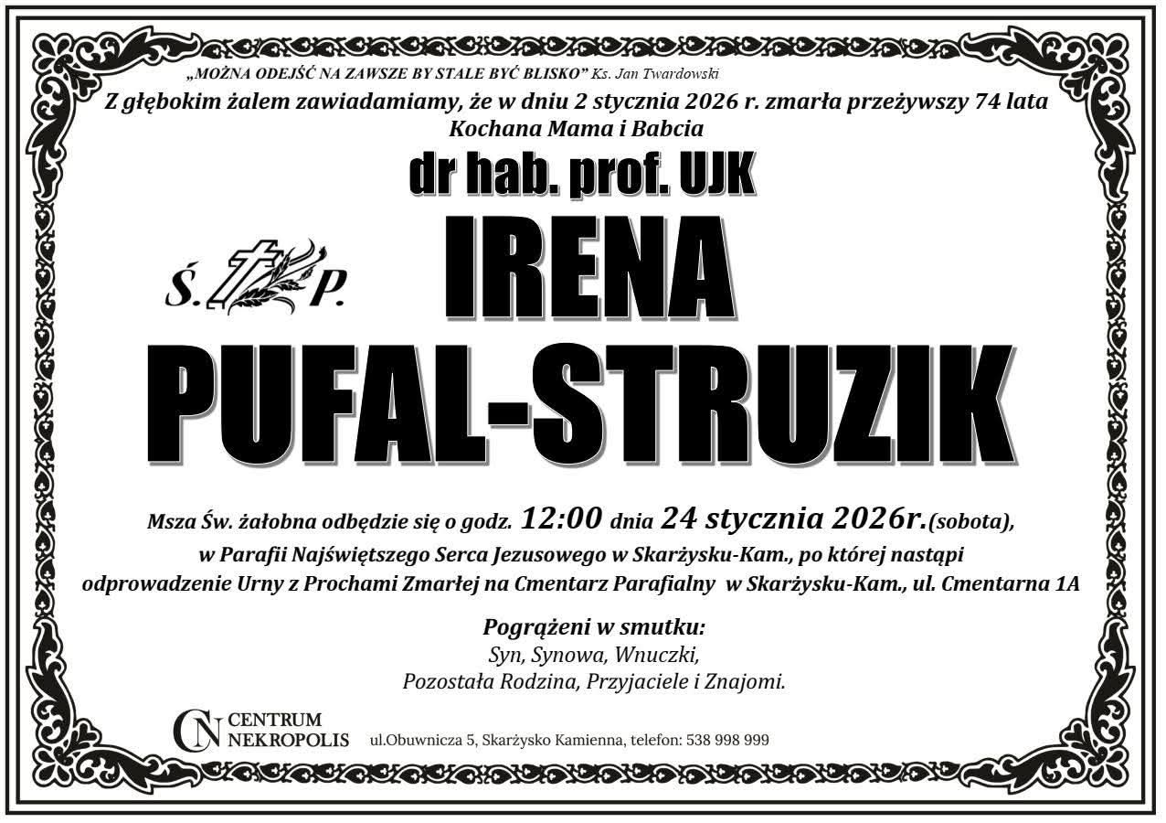 Z głębokim smutkiem zawiadamiamy, że zmarła dr hab. prof. UJK Irena Pufal-Struzik